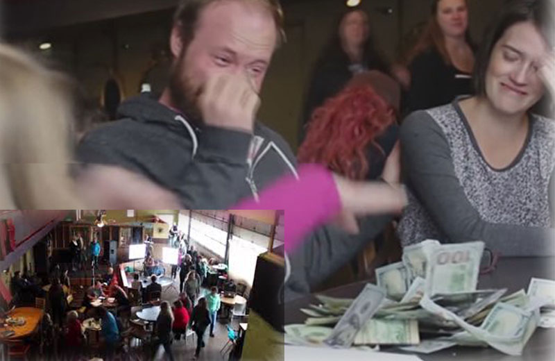Este mês, enquanto gravava um vídeo para pedir ajuda, ela foi surpreendida por um flash mob. De repente 200 pessoas entraram em fila e cada uma colocou sobre a mesa uma nota de 100 dólares. (vídeo abaixo)