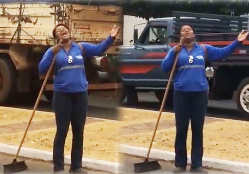 A voz e a alegria de uma gari de Minas Gerais – cantando Whitney Houston no meio da rua, com sua vassoura como pedestal do microfone – é impressionante.