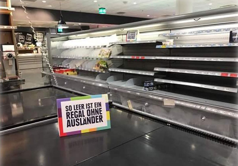 Como seria nossa vida sem os produtos importados e sem o trabalho dos estrangeiros? Para fazer a população refletir sobre isso, um supermercado alemão deu uma lição contra a xenofobia – a aversão a pessoas ou coisas estrangeiras.